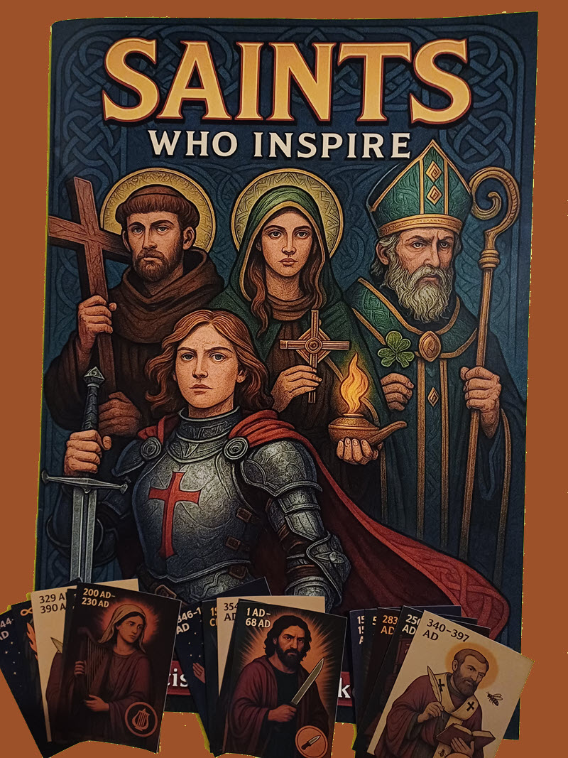 Each set includes one Saints Who Inspire sticker album and the complete collection of all 53 saint stickers.